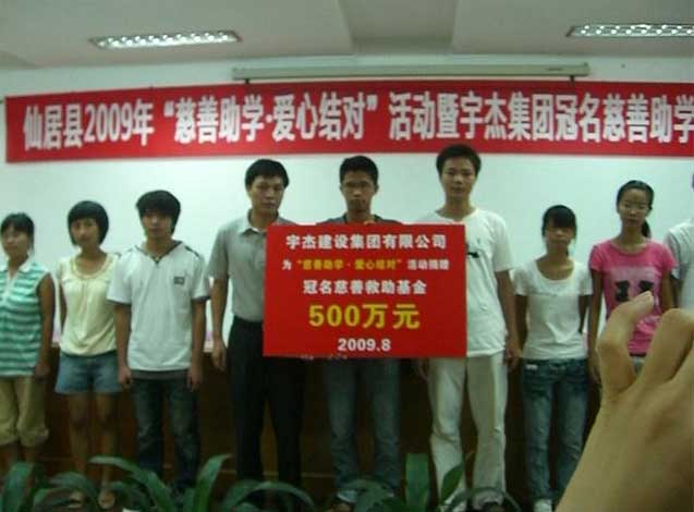 设立“宇杰集团慈善冠名基金”1000万元