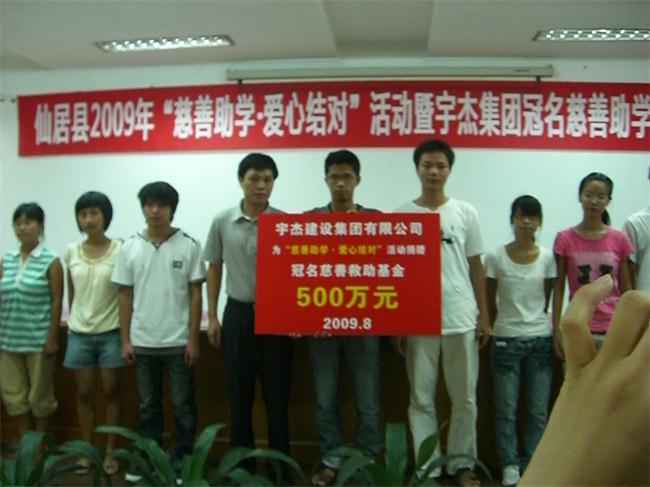 仙居县2009年“慈善助学·爱心结对”活动暨宇杰集团冠名基金慈善助学金发放仪式举行