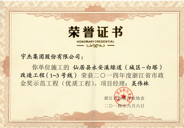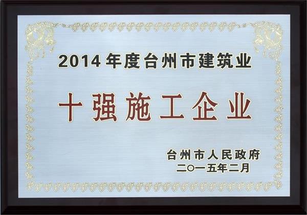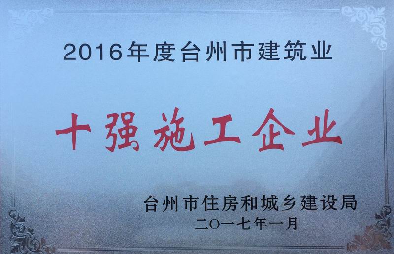 社会荣誉 守合同重信用企业. 省级工法 国家级工法 浙江省企业技术中心 浙江省文明单位 浙江省模范集体 浙江国际工程十年先锋人物奖杯 台州市建筑业十强施工 浙江省著名商标 浙江省对外承包工程十强企业 台州市“走出去”发展优秀施工企··· 台州市建筑业十强施工企业 国家工商总局“守合同、重信用”··· 2014年度浙江省市政金奖示范工程··· 2014年度浙江省优秀市政工程项目··· 2014年度浙江省市政行业优秀职业··· 2014年度浙江省市政行业先进单位 中国市政金奖杯 浙江市政标化工地 钱江杯 重庆市政金奖 江西省优良奖 括苍杯奖 西湖杯